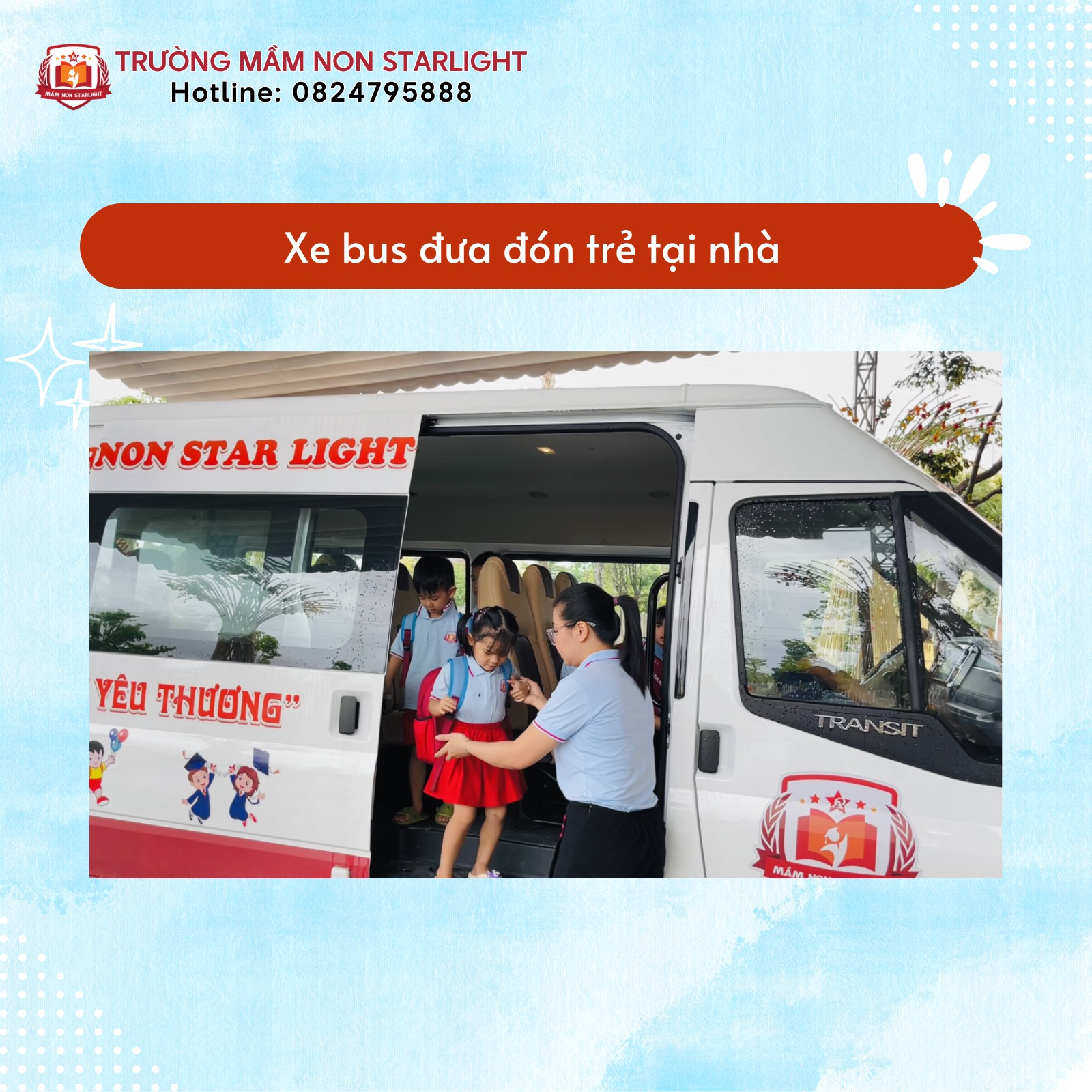 Để thuận tiện cho phụ huynh, Starlight cung cấp dịch vụ xe đưa đón tận nhà, giúp tiết kiệm thời gian và công sức.